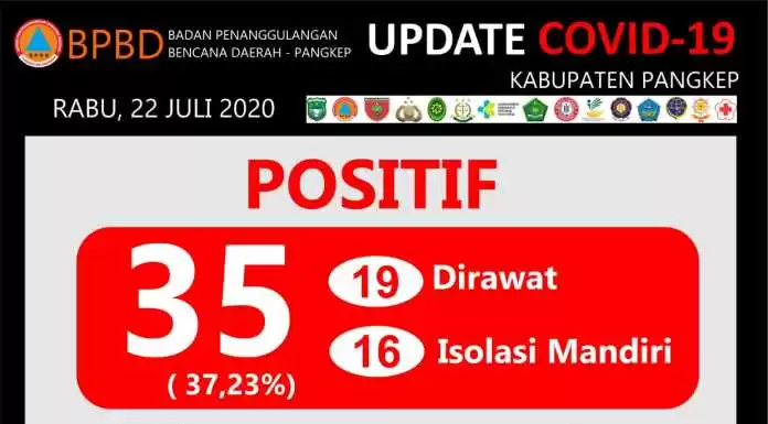 Data Pusdalops Kabupaten Pangkep mencatat, sebanyak 19 masih dirawat, 16 isolasi mandiri.