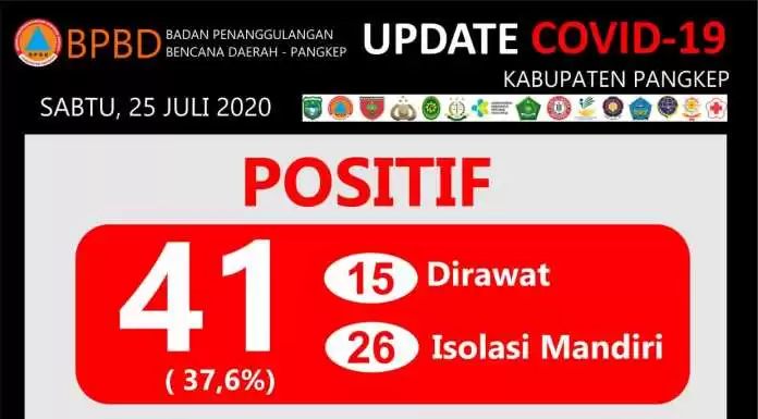 Sementara data Pusdalops BPBD Pangkep pertanggal Minggu, 26 Juli 2020, mencatat dari total 109 data positif Covid-19 di Pangkep, 64 diantaranya sudah dinyatakan sembuh.