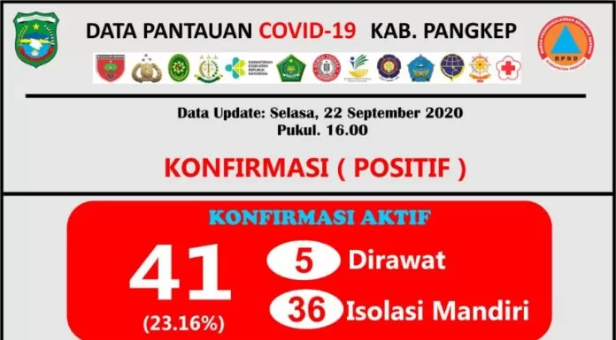 Data Pusdalops Kabupaten Pangkep mencatat, data terkonfirmasi sebanyak 41 kasus, lima dirawat, 36 isolasi mandiri.