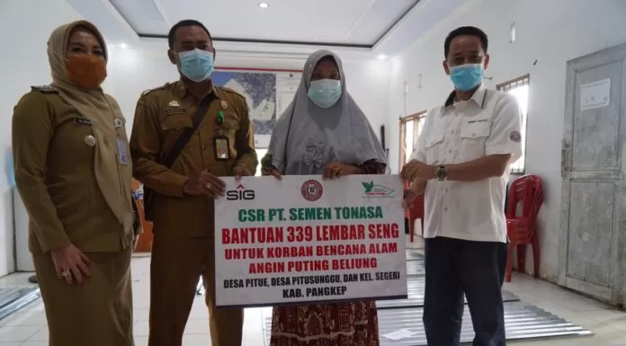 Sebanyak 339 lembar bantuan atap seng dari PT Semen Tonasa diserahkan oleh Kepala Biro CSR PT Semen Tonasa Harun Diming beserta staf yang diterima langsung Pelaksana Tugas Desa Pitue Barhaman, Pelaksana Tugas Desa Pitusunggu Rustan, Kasi Pemerintahan Kelurahan Segeri Fatmawati, Selasa 09 Maret 2021.
